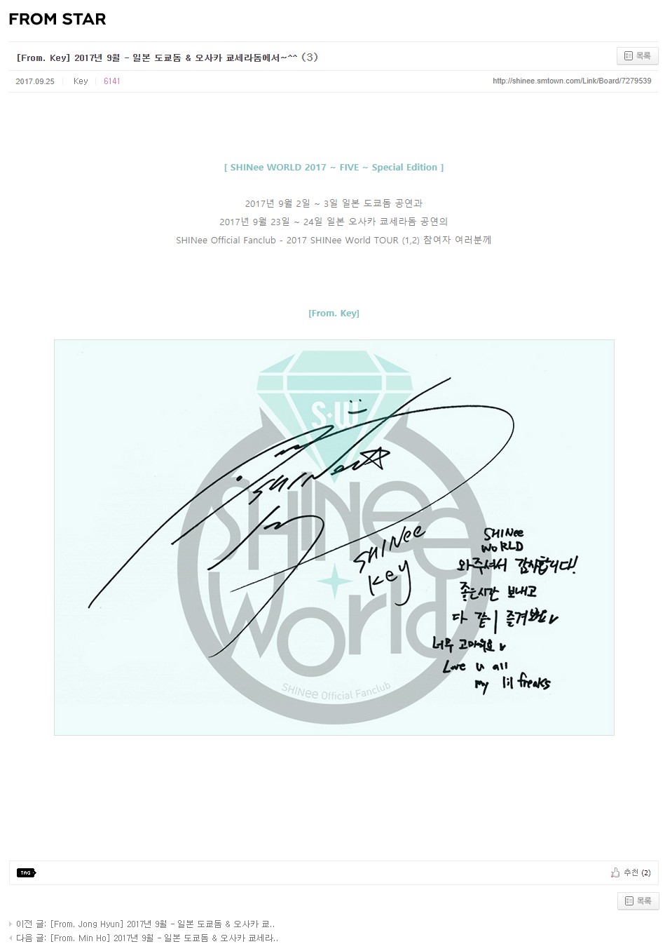 SHINee Official Fanclub - To everyone who attended 2017 SHINee World TOUR (1,2)