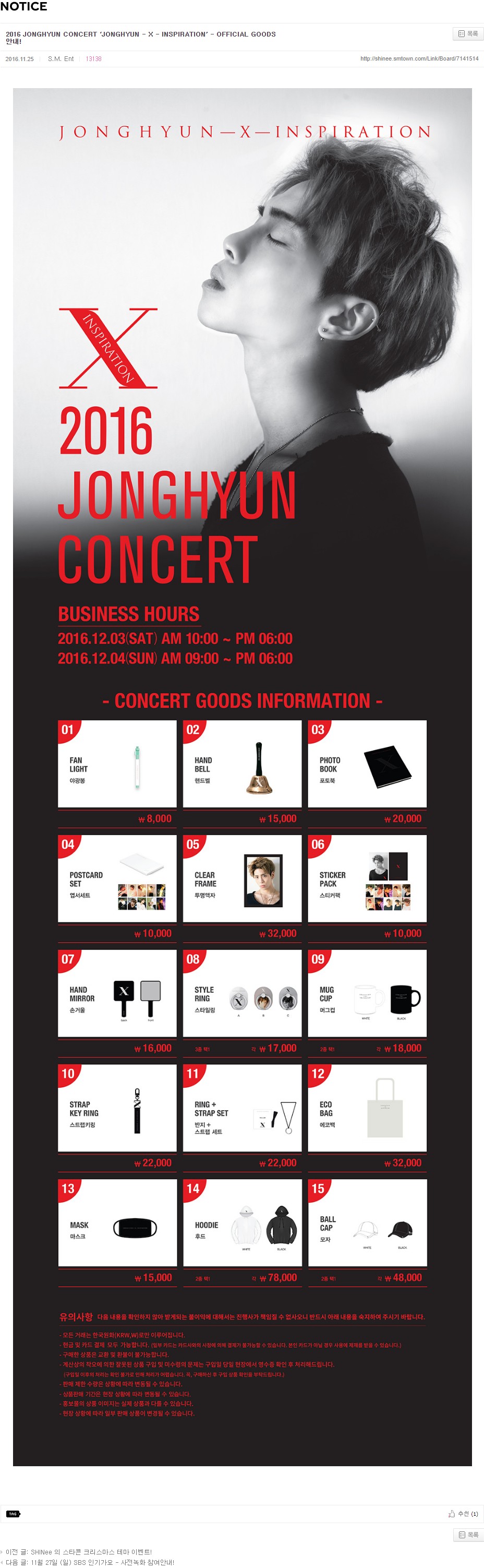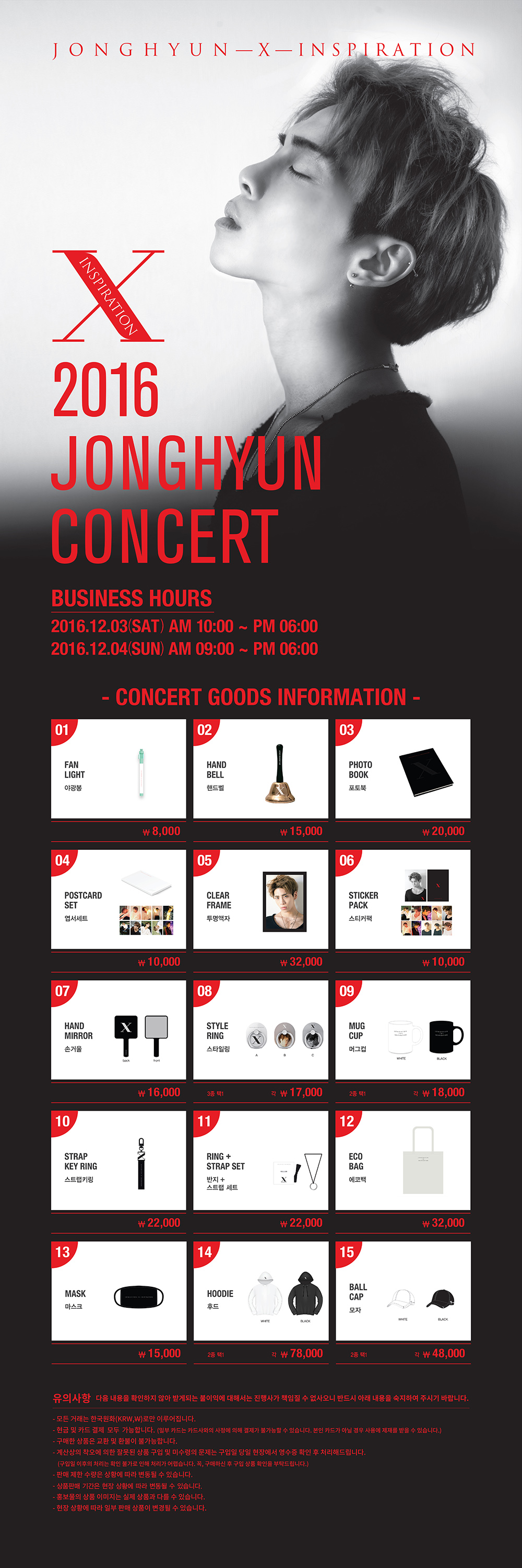 2016 JONGHYUN CONCERT ‘JONGHYUN - X - INSPIRATION’ - OFFICIAL GOODS 안내!