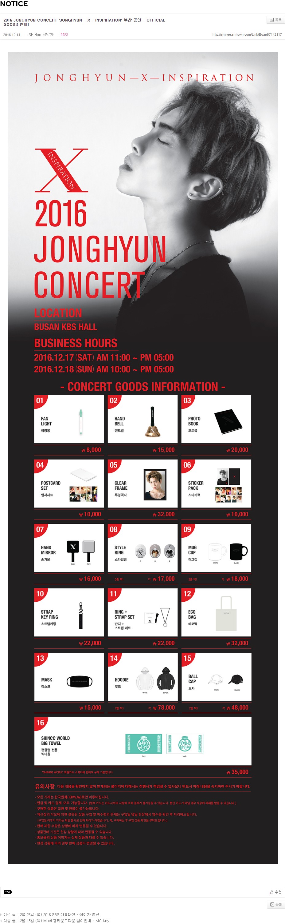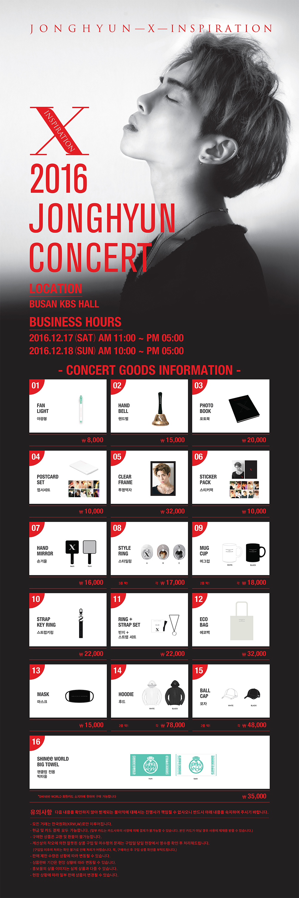 2016 JONGHYUN CONCERT ‘JONGHYUN - X - INSPIRATION’ 부산 공연 - OFFICIAL GOODS 안내!