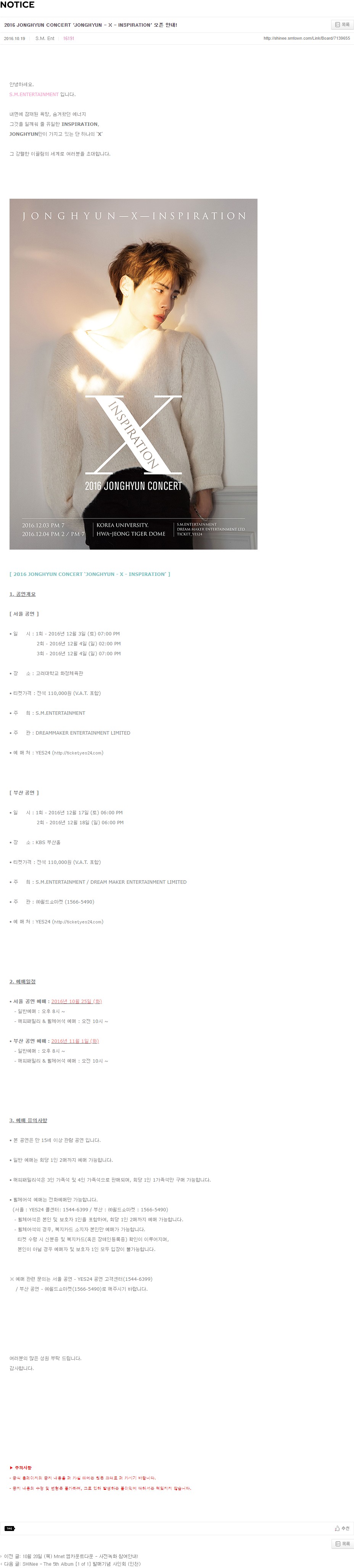 2016 JONGHYUN CONCERT ‘JONGHYUN - X - INSPIRATION’ 오픈 안내!