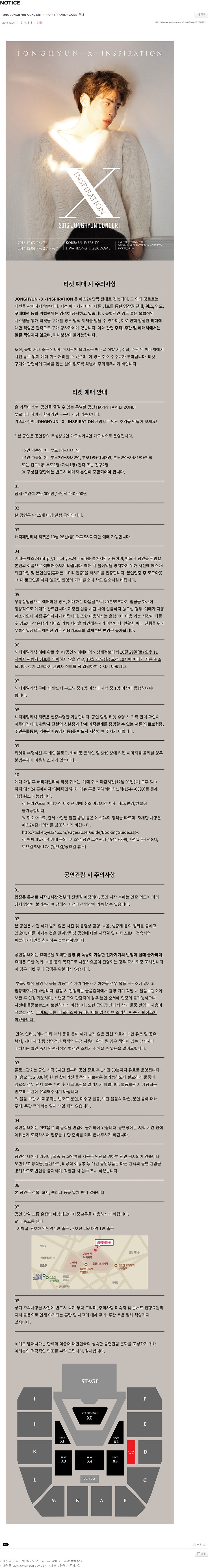 2016 JONGHYUN CONCERT - HAPPY FAMILY ZONE 안내