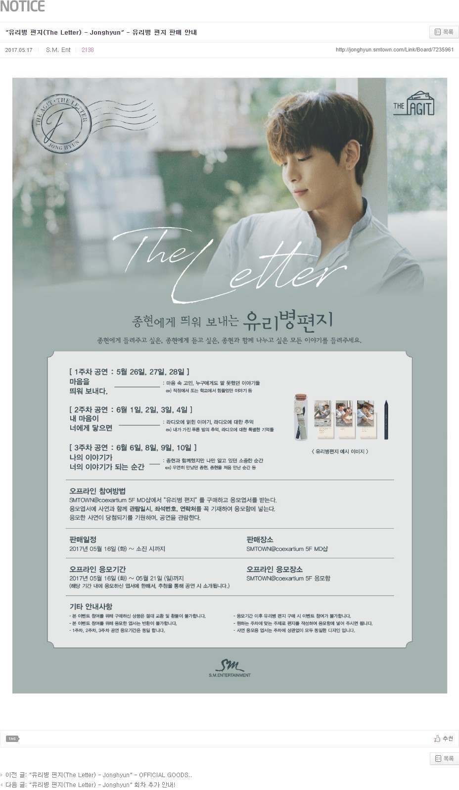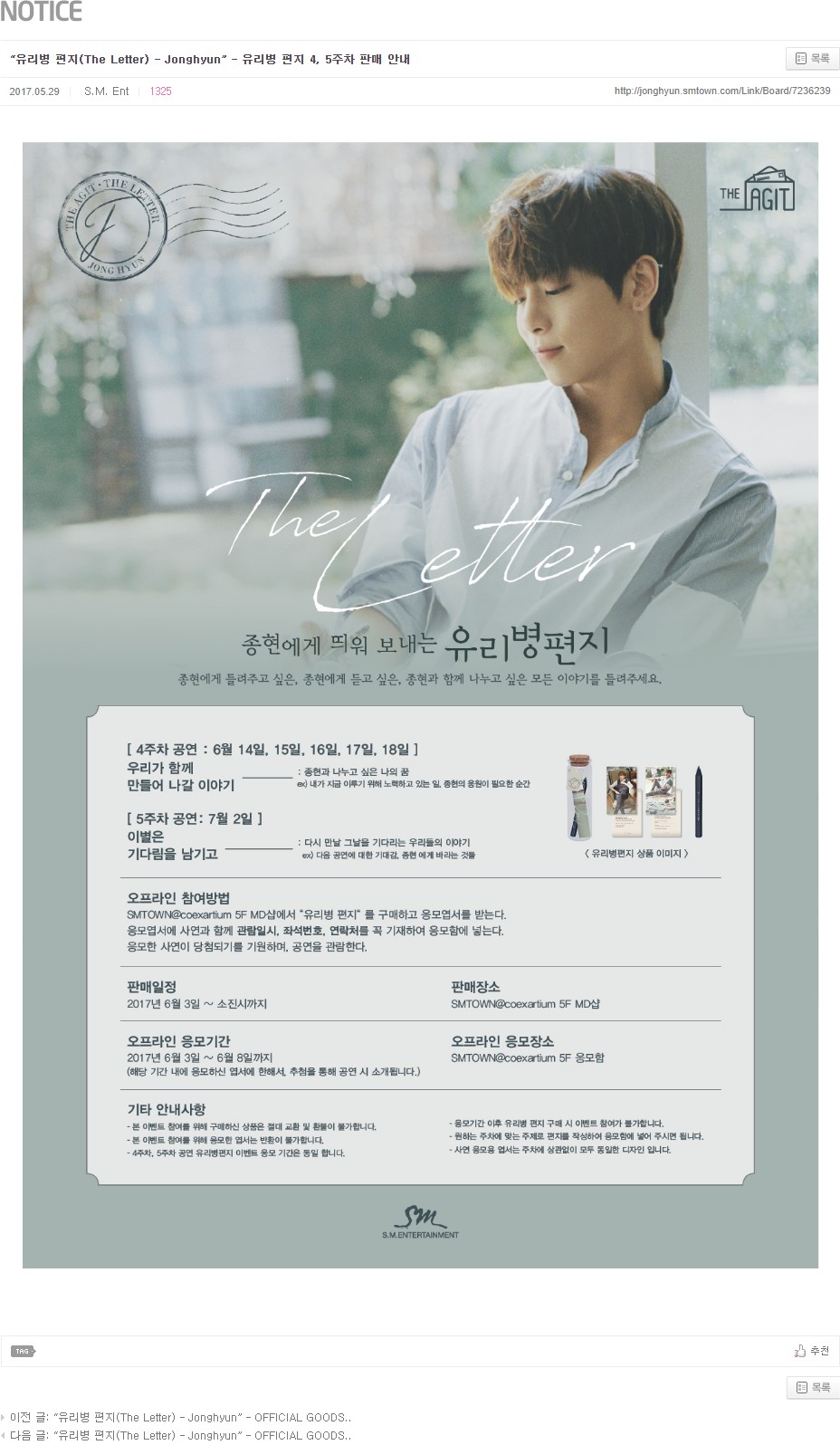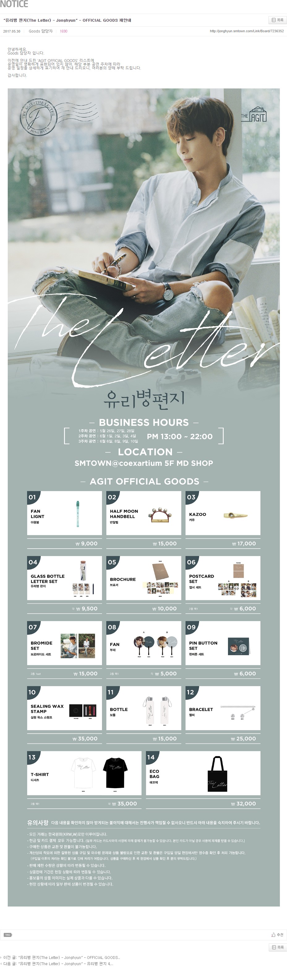 “유리병 편지(The Letter) - Jonghyun” - OFFICIAL GOODS 재안내