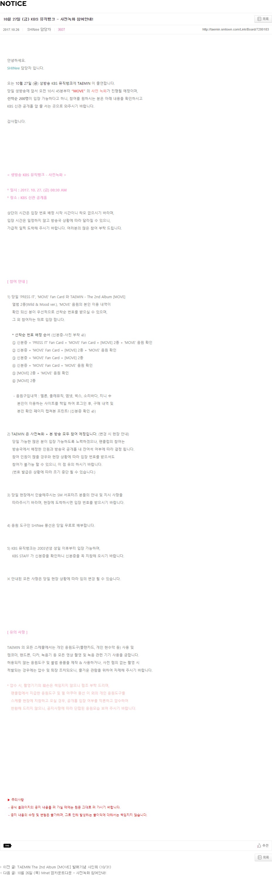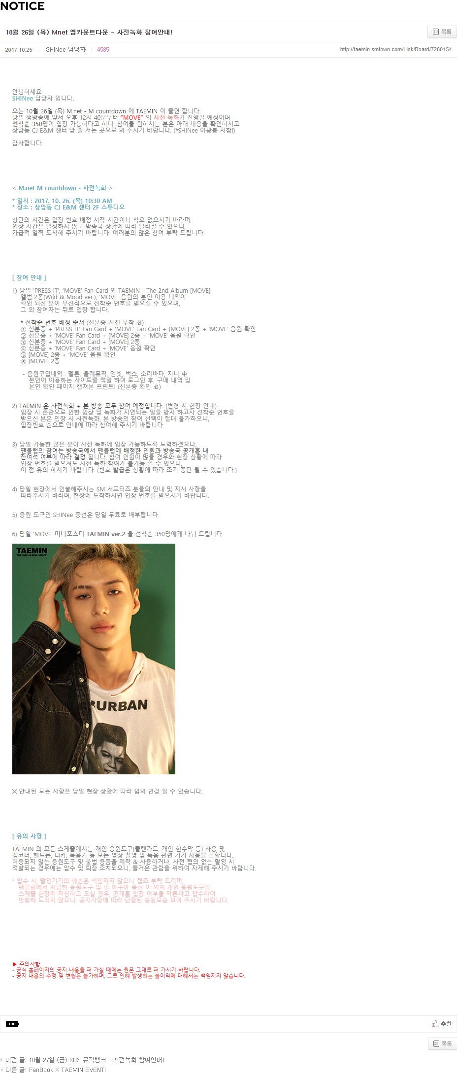 2) TAEMIN 은 사전녹화 + 본 방송 모두 참여 예정입니다. (변경 시 현장 안내)